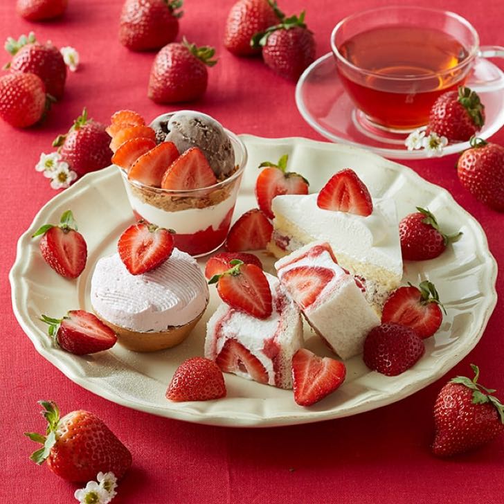 アフタヌーンティーが運営するカフェ「アフタヌーンティーティールーム」では、期間限定で苺のスイーツメニューが楽しめます。