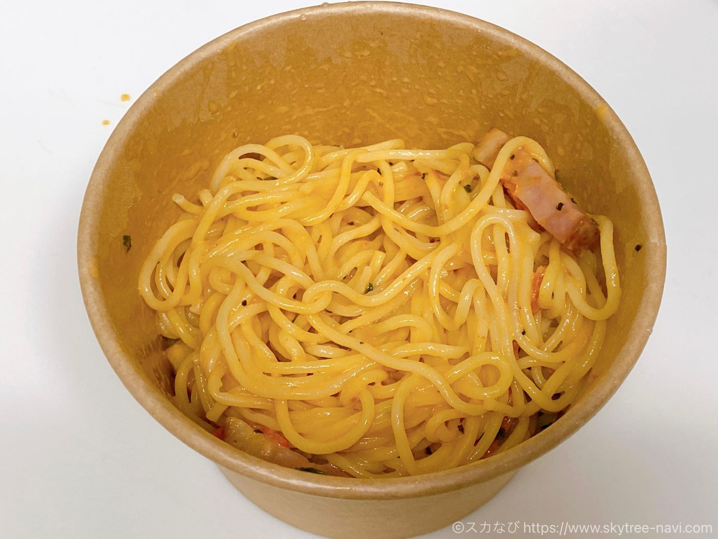 こちらがもう一つテイクアウトした「しめじと明太子のクリームパスタ」。