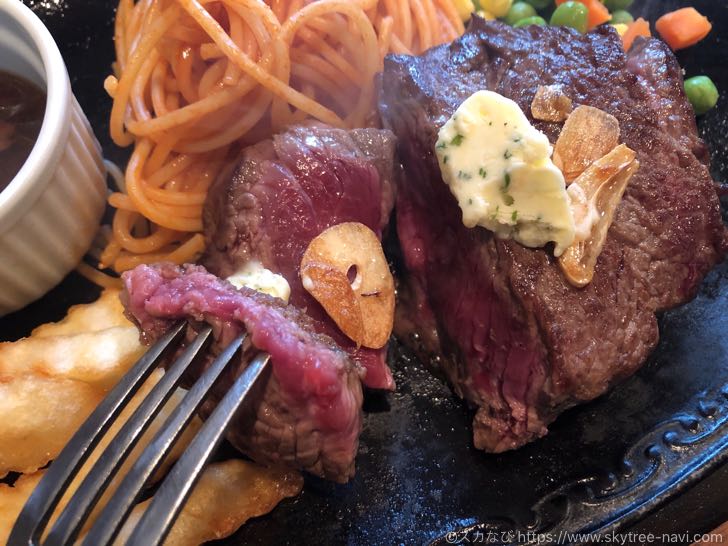 ステーキを食べる満足感をとことん味わいたいなら、ちょっと大きめのサイズを注文することをおすすめしますよ。