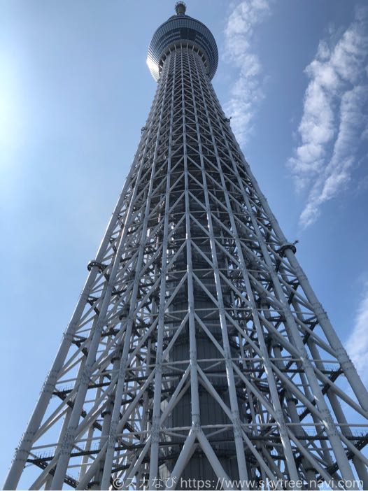スカイツリーに近づいて真上を見上げて写真を撮ると、何にも邪魔されない真っ直ぐ伸びるスカイツリーを写真に残すことができます。