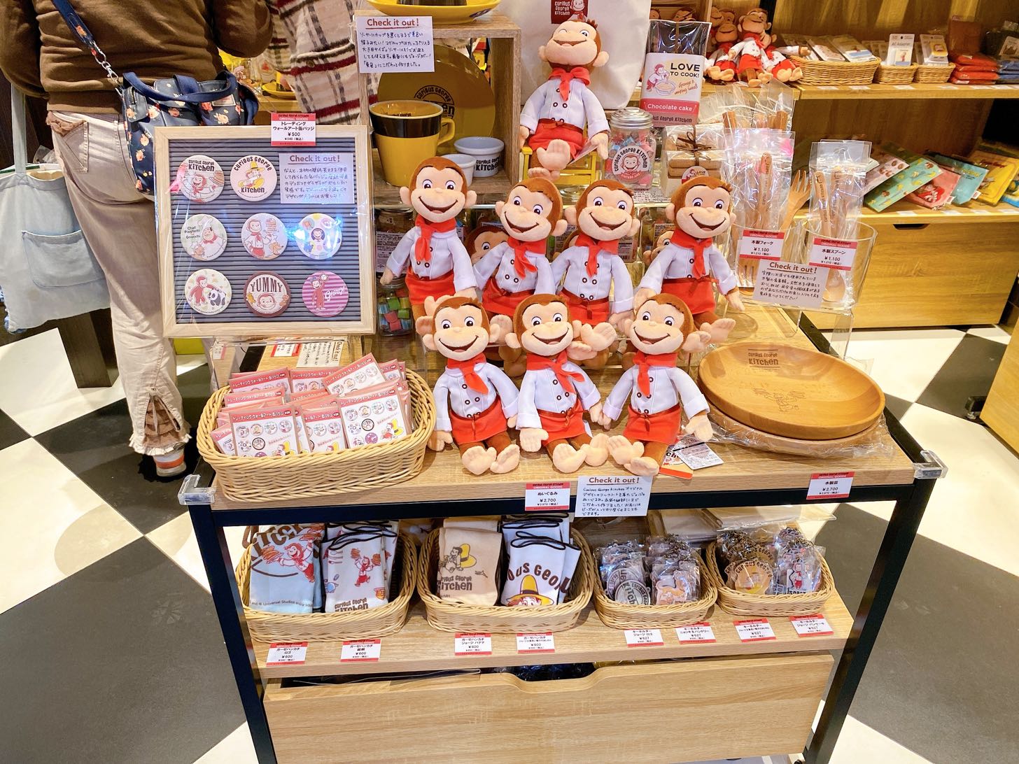 物販エリアは、「おさるのジョージ」キッチンオリジナルのグッズがいっぱい!