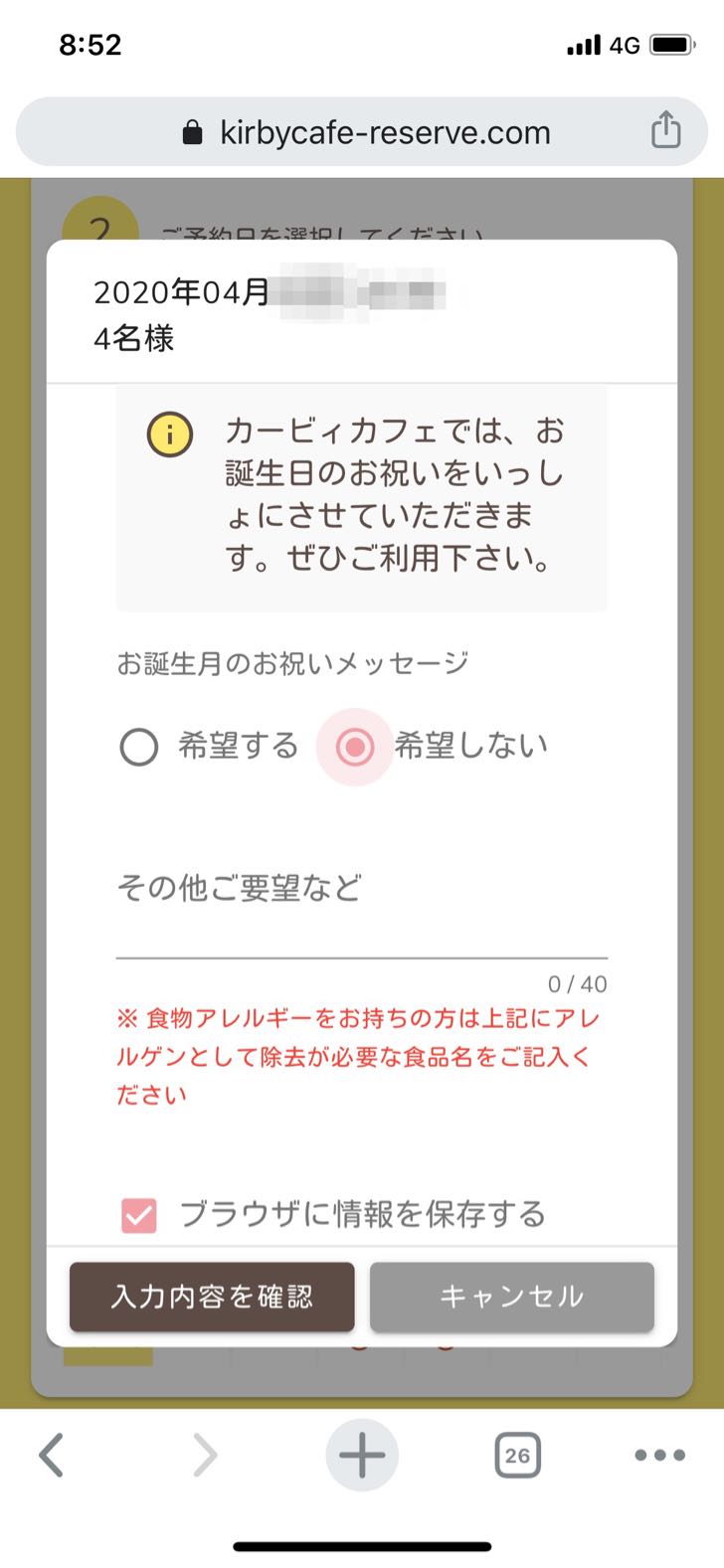 カービィカフェは、予約手続きをスタートしてから10分以内に予約を完了させないといけません。