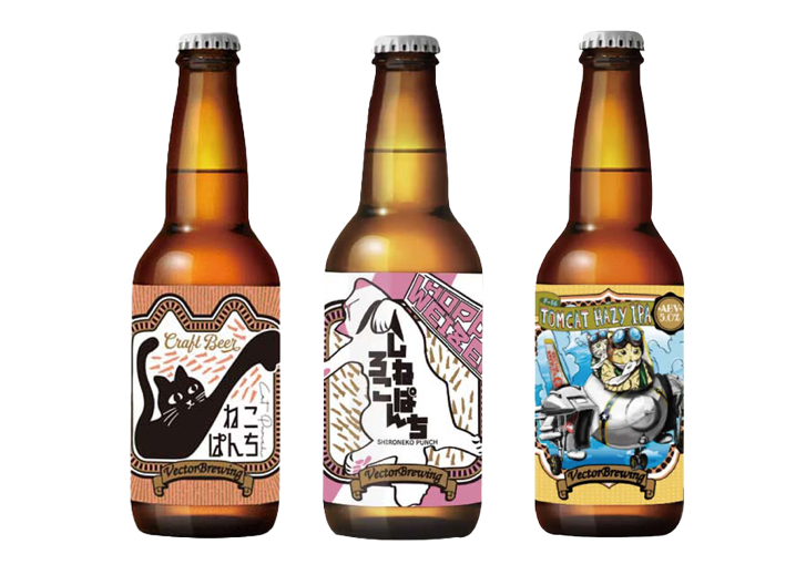 (左から)ねこぱんち/しろねこぱんち/TomCatHazyIPA 各¥1,630(別途サービス料10%)