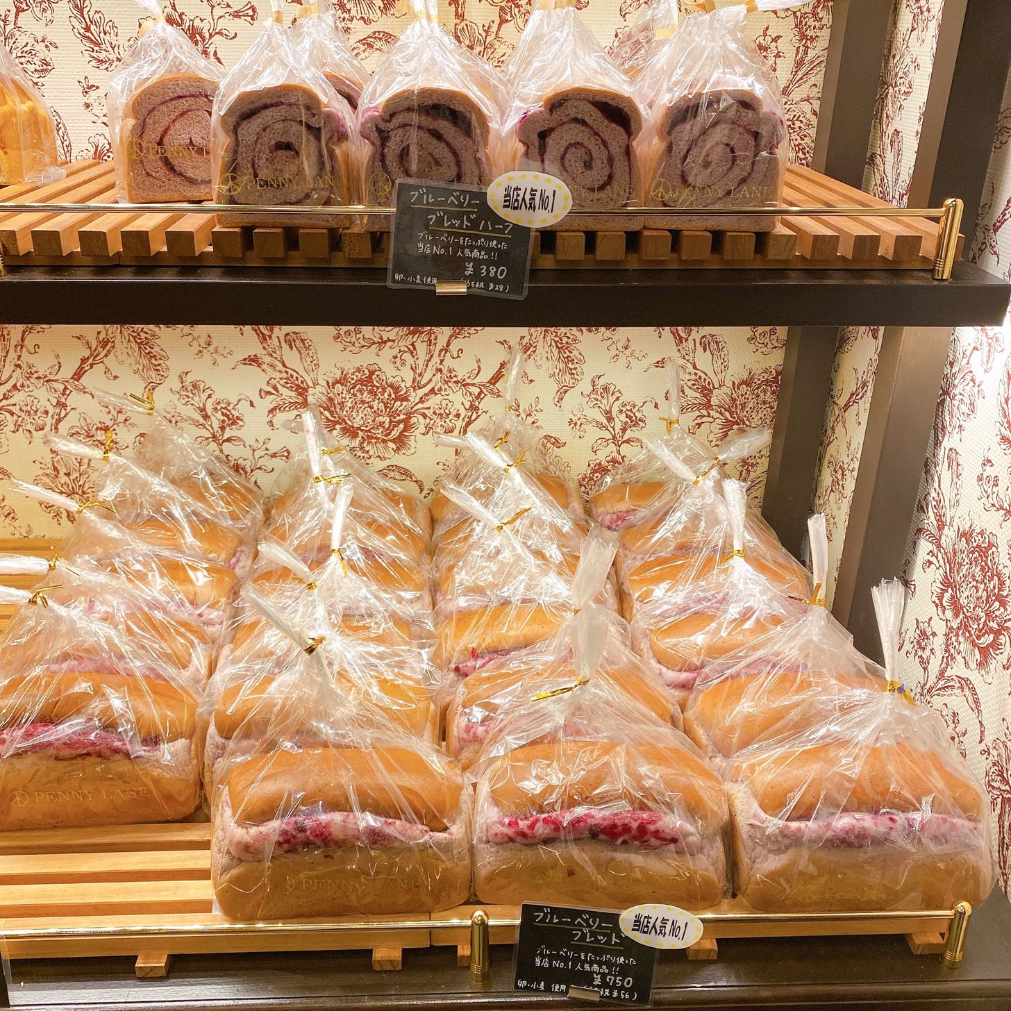 ペニーレインの代表的なパンであるブルーベリーブレッドもずらりと店頭に並んでいました。
