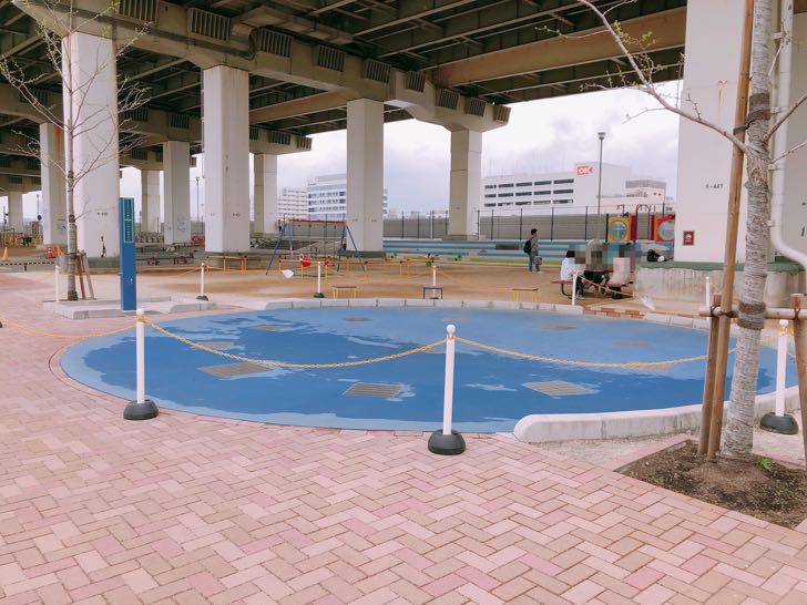 ちょっとした岩場のような作りになっていて橋もあるなど、大横川親水公園のじゃぶじゃぶ池を小さくしたようなイメージですね。